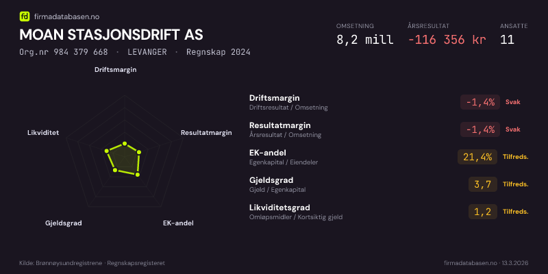 MOAN STASJONSDRIFT AS,LEVANGER — jo større areal, jo sterkere økonomi.Org.nr 984 379 668 · Regnskap2024