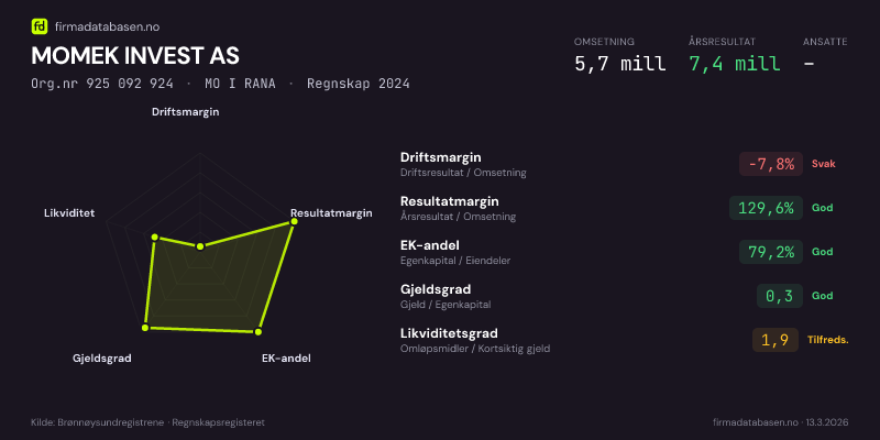 MOMEK INVEST AS,MO I RANA — jo større areal, jo sterkere økonomi.Org.nr 925 092 924 · Regnskap2024