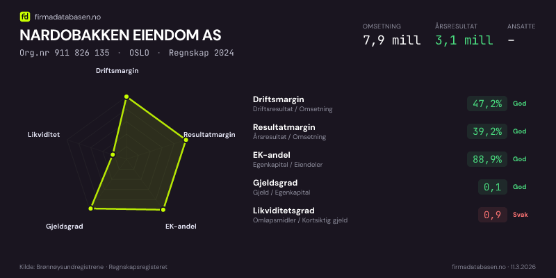 NARDOBAKKEN EIENDOM AS,OSLO — jo større areal, jo sterkere økonomi.Org.nr 911 826 135 · Regnskap2024
