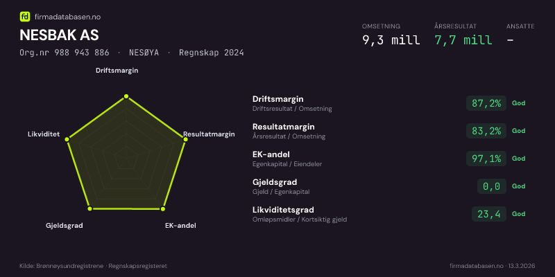 NESBAK AS,NESØYA — jo større areal, jo sterkere økonomi.Org.nr 988 943 886 · Regnskap2024