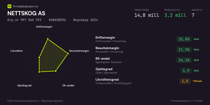 NETTSKOG AS,KONGSBERG — jo større areal, jo sterkere økonomi.Org.nr 997 060 393 · Regnskap2024