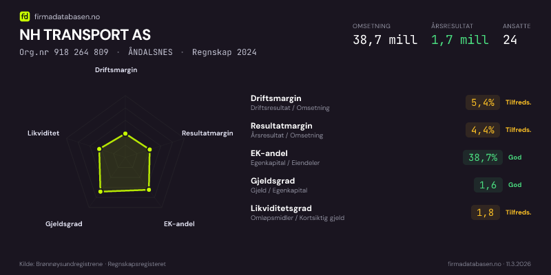 NH TRANSPORT AS,ÅNDALSNES — jo større areal, jo sterkere økonomi.Org.nr 918 264 809 · Regnskap2024