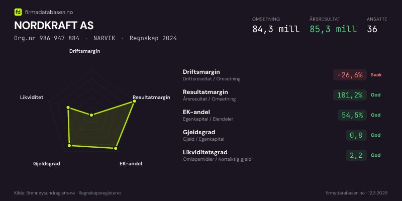 NORDKRAFT AS,NARVIK — jo større areal, jo sterkere økonomi.Org.nr 986 947 884 · Regnskap2024