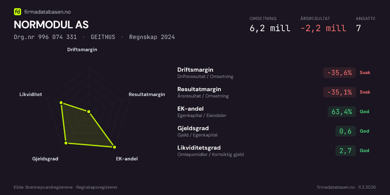 NORMODUL AS,GEITHUS — jo større areal, jo sterkere økonomi.Org.nr 996 074 331 · Regnskap2024