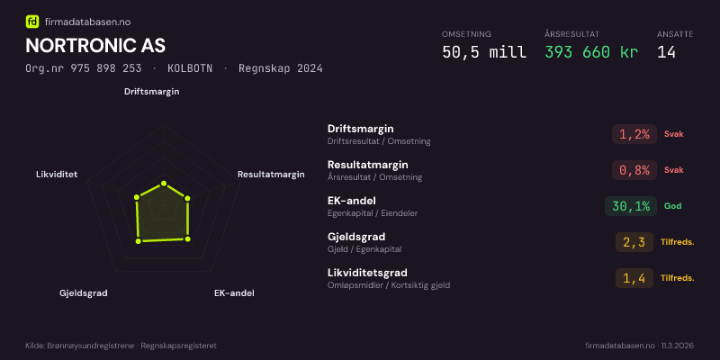 NORTRONIC AS,KOLBOTN — jo større areal, jo sterkere økonomi.Org.nr 975 898 253 · Regnskap2024