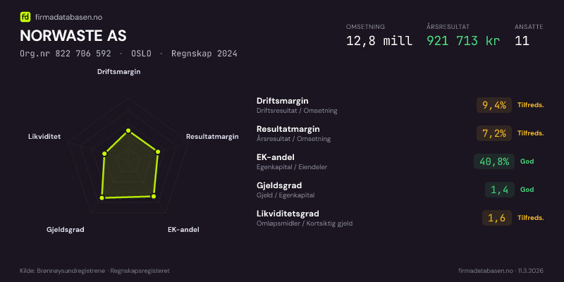NORWASTE AS,OSLO — jo større areal, jo sterkere økonomi.Org.nr 822 706 592 · Regnskap2024