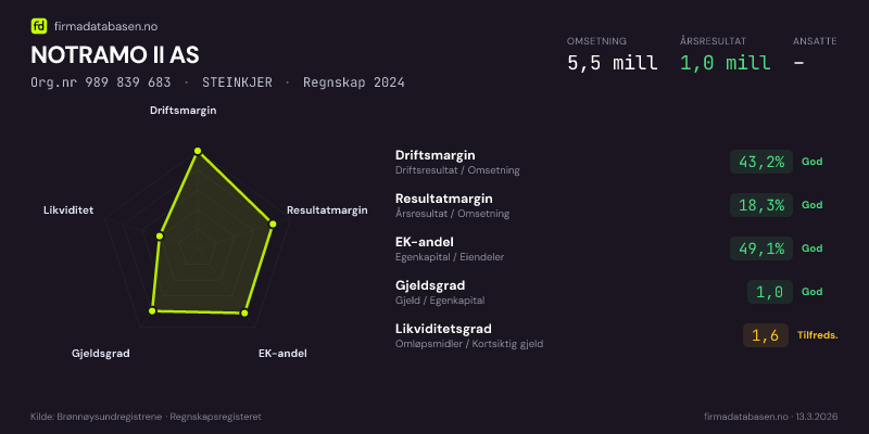 NOTRAMO II AS,STEINKJER — jo større areal, jo sterkere økonomi.Org.nr 989 839 683 · Regnskap2024