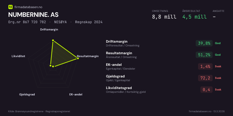 NUMBERNINE. AS,NESØYA — jo større areal, jo sterkere økonomi.Org.nr 867 720 782 · Regnskap2024
