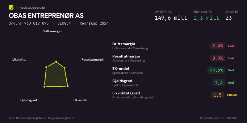 OBAS ENTREPRENØR AS,BERGEN — jo større areal, jo sterkere økonomi.Org.nr 960 018 095 · Regnskap2024