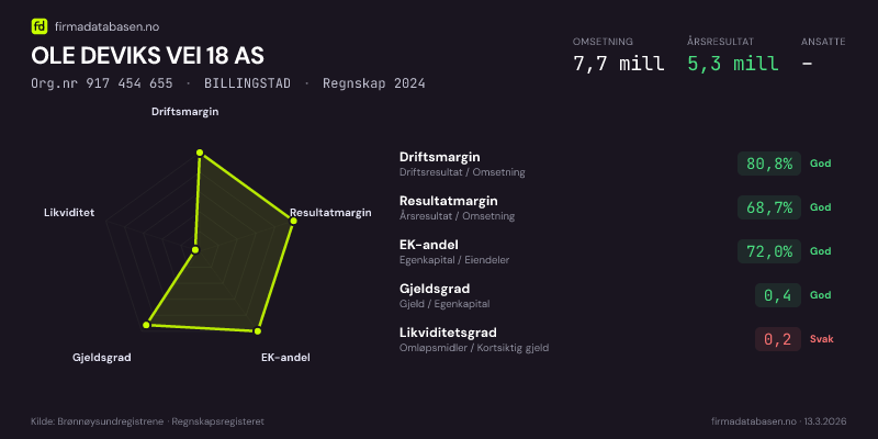 OLE DEVIKS VEI 18 AS,BILLINGSTAD — jo større areal, jo sterkere økonomi.Org.nr 917 454 655 · Regnskap2024