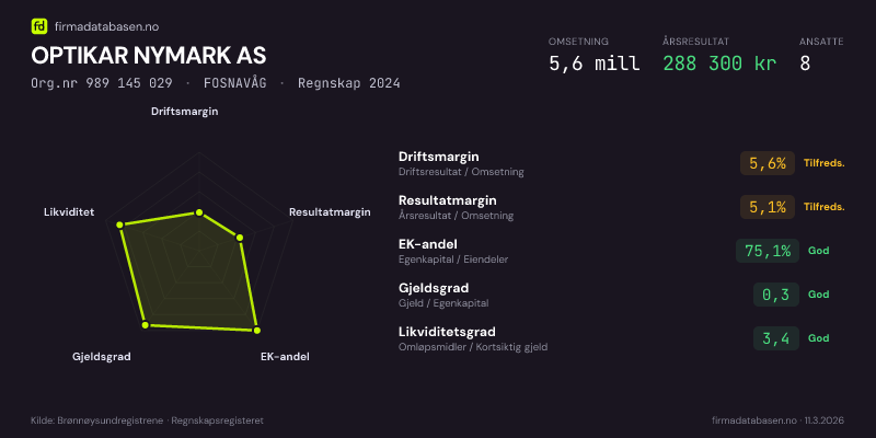 OPTIKAR NYMARK AS,FOSNAVÅG — jo større areal, jo sterkere økonomi.Org.nr 989 145 029 · Regnskap2024