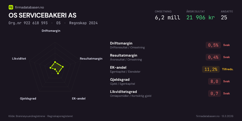 OS SERVICEBAKERI AS,OS — jo større areal, jo sterkere økonomi.Org.nr 922 618 593 · Regnskap2024
