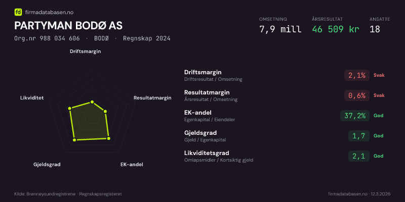 PARTYMAN BODØ AS,BODØ — jo større areal, jo sterkere økonomi.Org.nr 988 034 606 · Regnskap2024