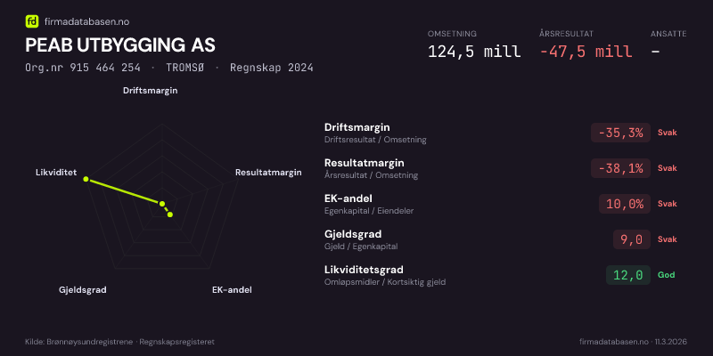 PEAB UTBYGGING AS,TROMSØ — jo større areal, jo sterkere økonomi.Org.nr 915 464 254 · Regnskap2024