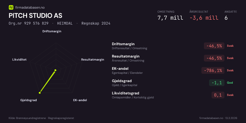 PITCH STUDIO AS,HEIMDAL — jo større areal, jo sterkere økonomi.Org.nr 929 576 829 · Regnskap2024