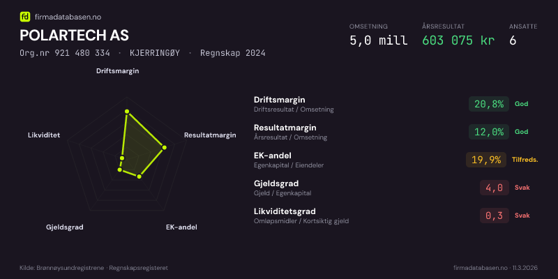 POLARTECH AS,KJERRINGØY — jo større areal, jo sterkere økonomi.Org.nr 921 480 334 · Regnskap2024