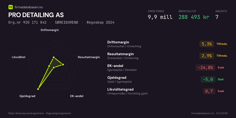 PRO DETAILING AS,SØREIDGREND — jo større areal, jo sterkere økonomi.Org.nr 920 171 842 · Regnskap2024
