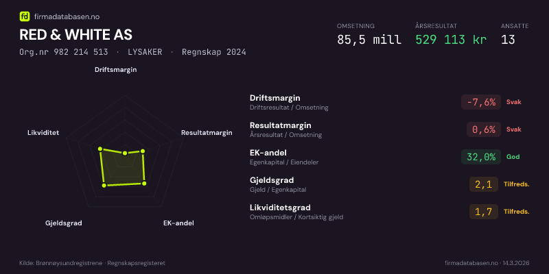 RED & WHITE AS,LYSAKER — jo større areal, jo sterkere økonomi.Org.nr 982 214 513 · Regnskap2024