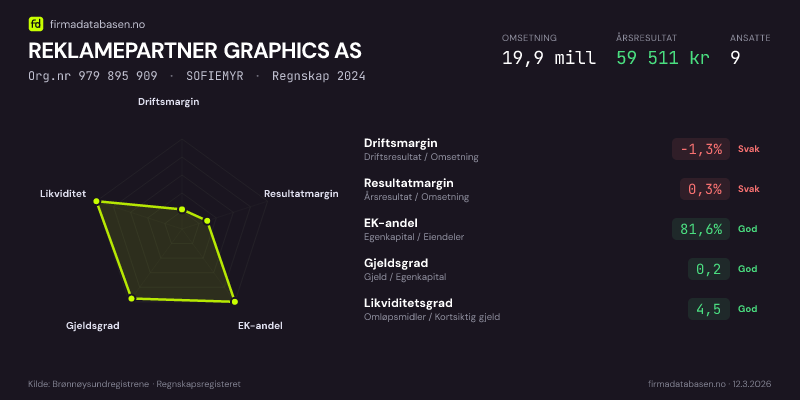 REKLAMEPARTNER GRAPHICS AS,SOFIEMYR — jo større areal, jo sterkere økonomi.Org.nr 979 895 909 · Regnskap2024