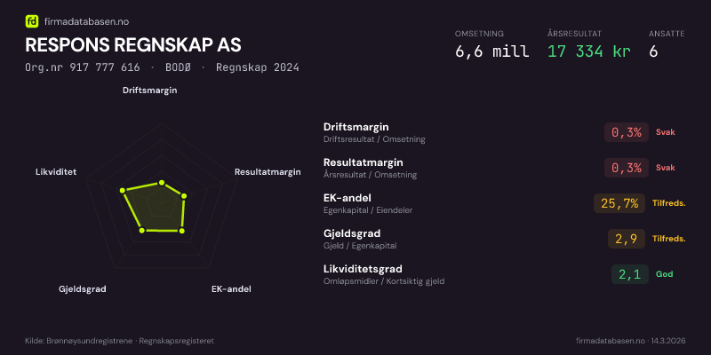 RESPONS REGNSKAP AS,BODØ — jo større areal, jo sterkere økonomi.Org.nr 917 777 616 · Regnskap2024