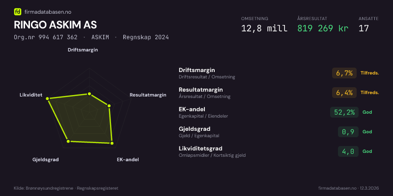 RINGO ASKIM AS,ASKIM — jo større areal, jo sterkere økonomi.Org.nr 994 617 362 · Regnskap2024