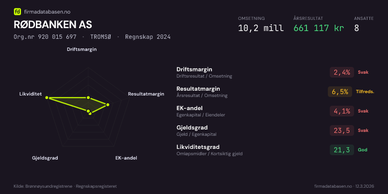 RØDBANKEN AS,TROMSØ — jo større areal, jo sterkere økonomi.Org.nr 920 015 697 · Regnskap2024