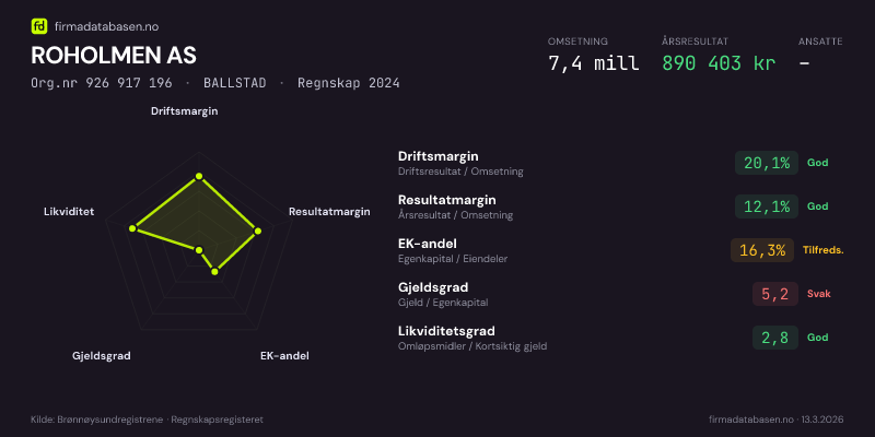 ROHOLMEN AS,BALLSTAD — jo større areal, jo sterkere økonomi.Org.nr 926 917 196 · Regnskap2024