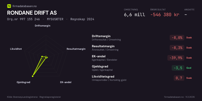 RONDANE DRIFT AS,MYSUSÆTER — jo større areal, jo sterkere økonomi.Org.nr 997 155 246 · Regnskap2024