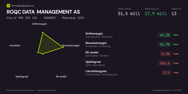 ROQC DATA MANAGEMENT AS,SANDNES — jo større areal, jo sterkere økonomi.Org.nr 885 383 432 · Regnskap2024