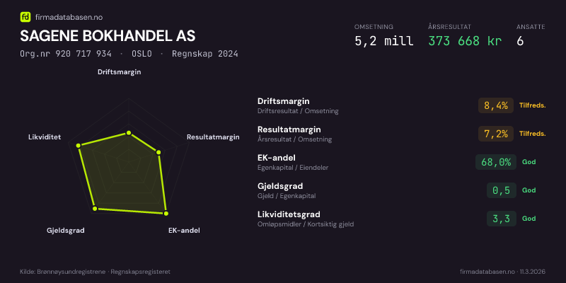 SAGENE BOKHANDEL AS,OSLO — jo større areal, jo sterkere økonomi.Org.nr 920 717 934 · Regnskap2024