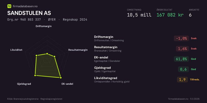 SANDSTULEN AS,ØYER — jo større areal, jo sterkere økonomi.Org.nr 960 803 337 · Regnskap2024