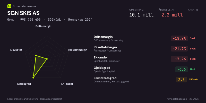 SGN SKIS AS,SOGNDAL — jo større areal, jo sterkere økonomi.Org.nr 998 755 409 · Regnskap2024