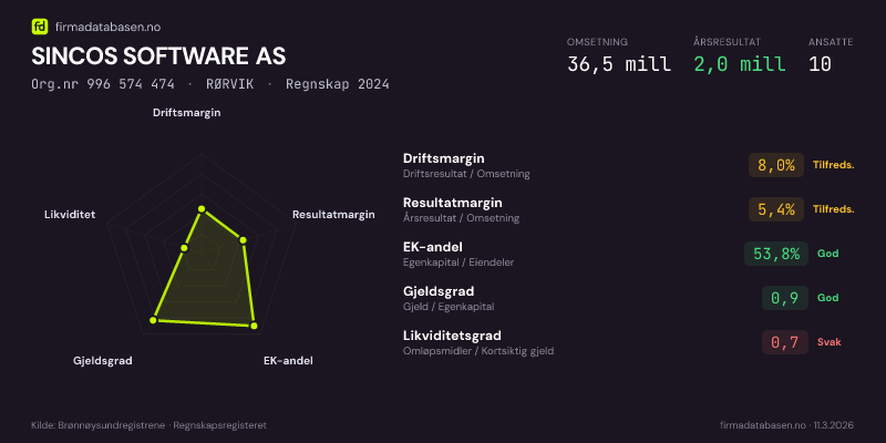 SINCOS SOFTWARE AS,RØRVIK — jo større areal, jo sterkere økonomi.Org.nr 996 574 474 · Regnskap2024
