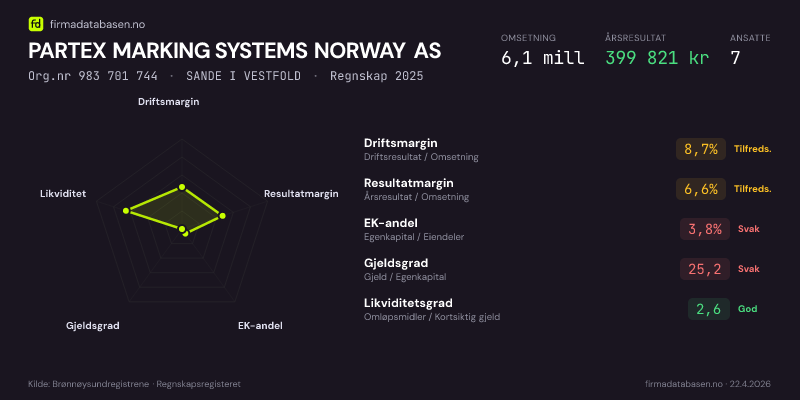 PARTEX MARKING SYSTEMS NORWAY AS,SANDE I VESTFOLD — jo større areal, jo sterkere økonomi.Org.nr 983 701 744 · Regnskap2025