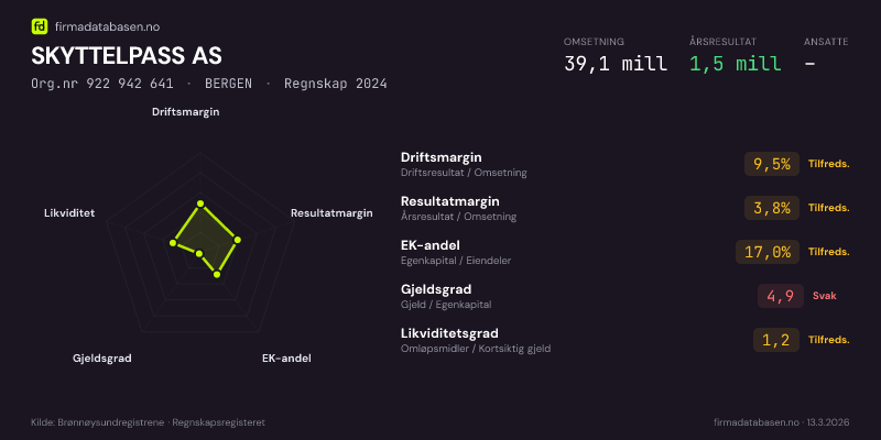 SKYTTELPASS AS,BERGEN — jo større areal, jo sterkere økonomi.Org.nr 922 942 641 · Regnskap2024