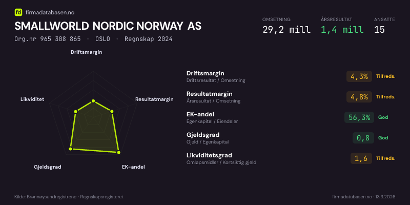 SMALLWORLD NORDIC NORWAY AS,OSLO — jo større areal, jo sterkere økonomi.Org.nr 965 308 865 · Regnskap2024