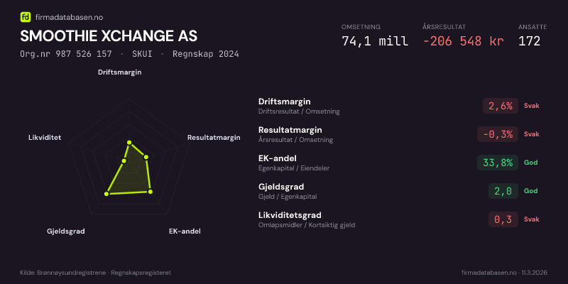 SMOOTHIE XCHANGE AS,SKUI — jo større areal, jo sterkere økonomi.Org.nr 987 526 157 · Regnskap2024
