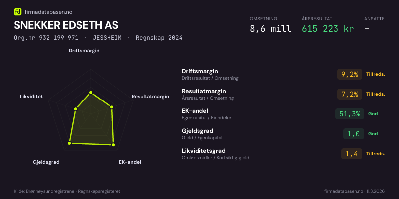SNEKKER EDSETH AS,JESSHEIM — jo større areal, jo sterkere økonomi.Org.nr 932 199 971 · Regnskap2024