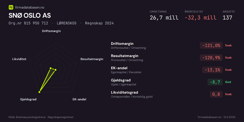 SNØ OSLO AS,LØRENSKOG — jo større areal, jo sterkere økonomi.Org.nr 815 950 712 · Regnskap2024