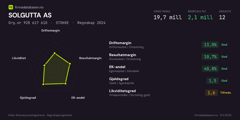 SOLGUTTA AS,STOKKE — jo større areal, jo sterkere økonomi.Org.nr 928 617 610 · Regnskap2024