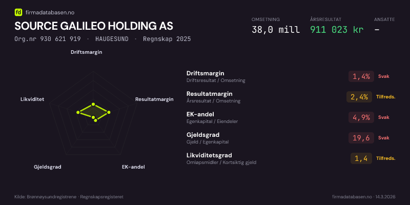 SOURCE GALILEO HOLDING AS,HAUGESUND — jo større areal, jo sterkere økonomi.Org.nr 930 621 919 · Regnskap2025
