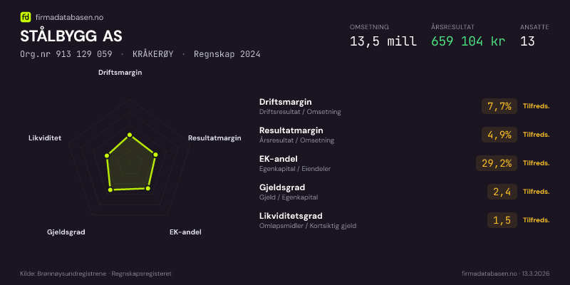 STÅLBYGG AS,KRÅKERØY — jo større areal, jo sterkere økonomi.Org.nr 913 129 059 · Regnskap2024