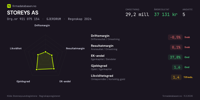 STOREYS AS,GJERDRUM — jo større areal, jo sterkere økonomi.Org.nr 921 075 154 · Regnskap2024