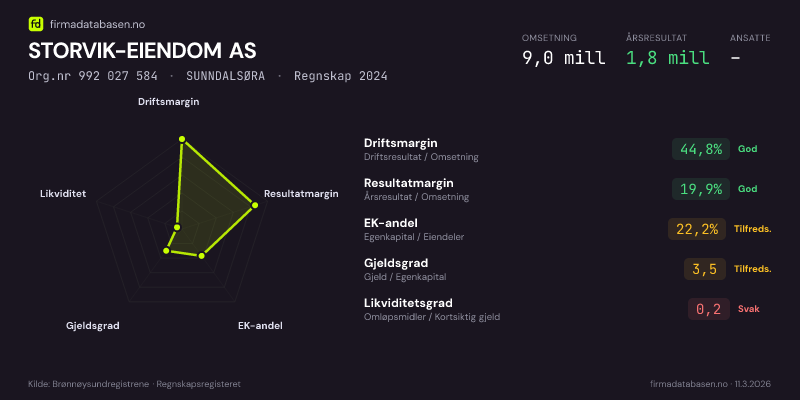 STORVIK-EIENDOM AS,SUNNDALSØRA — jo større areal, jo sterkere økonomi.Org.nr 992 027 584 · Regnskap2024