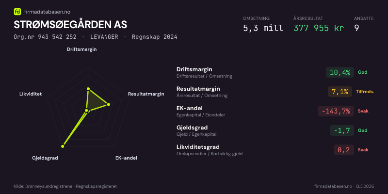 STRØMSØEGÅRDEN AS,LEVANGER — jo større areal, jo sterkere økonomi.Org.nr 943 542 252 · Regnskap2024