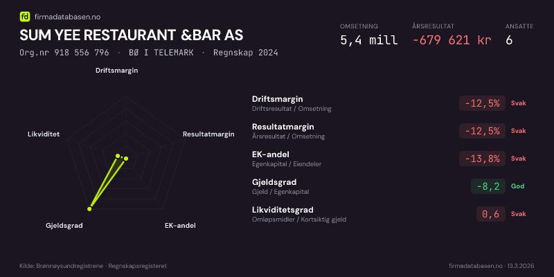 SUM YEE RESTAURANT &BAR AS,BØ I TELEMARK — jo større areal, jo sterkere økonomi.Org.nr 918 556 796 · Regnskap2024