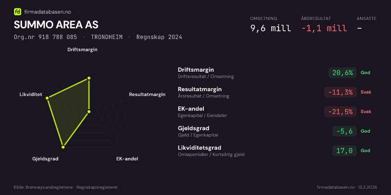 SUMMO AREA AS,TRONDHEIM — jo større areal, jo sterkere økonomi.Org.nr 918 788 085 · Regnskap2024
