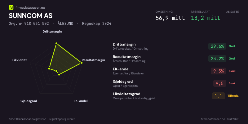 SUNNCOM AS,ÅLESUND — jo større areal, jo sterkere økonomi.Org.nr 918 031 502 · Regnskap2024