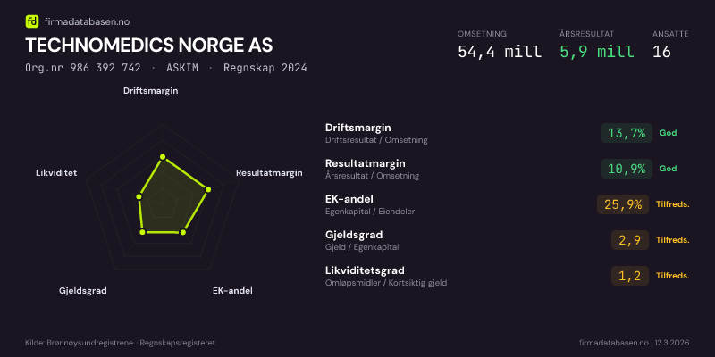 TECHNOMEDICS NORGE AS,ASKIM — jo større areal, jo sterkere økonomi.Org.nr 986 392 742 · Regnskap2024