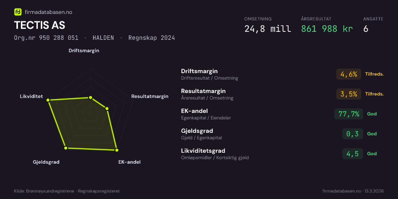 TECTIS AS,HALDEN — jo større areal, jo sterkere økonomi.Org.nr 950 288 051 · Regnskap2024